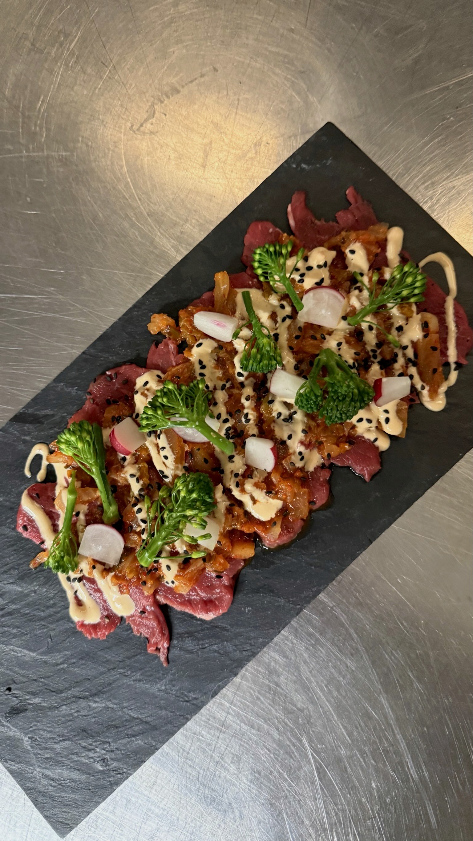 Een frisse twist op een klassieker. Deze kimchi carpaccio combineert zachte rundercarpaccio met pittige kimchi en romige kimchimayonaise. Licht, spannend en perfect als voorgerecht of lichte avondmaaltijd met karakter.